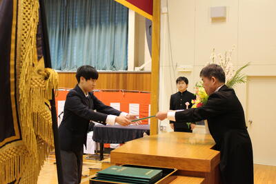 3月12日(木)に高等部、3月17日(火)小学部と中学部の卒業式がそれぞれ行われました。校長先生から卒業証書を受け取った卒業生は、これまでの自らの成長や頑張りを一人一人が感じ、在校生や保護者の皆さんなど会場へ、たくさんのよい顔、よい表情を見せてくれました。また、式歌の場面では、体育館の卒業生と在校生、オンライン参加の在校生も含めた一同の歌声が一つとなり、卒業生の巣立ちに華を添えることができました。釧路養護学校での学びを胸に、新しいステージでの活躍を願っています。卒業おめでとう!!